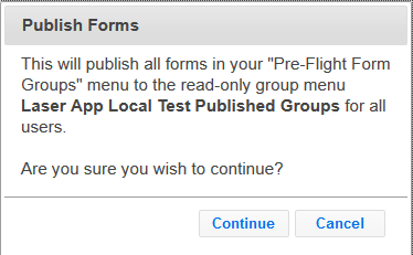 3. You must confirm that you wish to publish all form groups to all users. Press cancel to return to creating or editing groups. Press continue to publish groups to users.